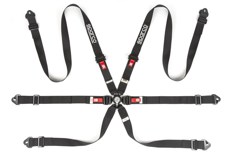 Sparco’s full line of harnesses works in unity with our competition seats. Crafted from high-quality fabric and fitted with durable fasteners, each harness restrains the body for added safety and protection. Our 6-point harness features 2-inch lap and shoulder straps that attach in the center using an aircraft-quality quick-release buckle with integrated anti-submarine belts. The lightweight steel adjusters allow for smooth, quick adjustments and perfect clamping. Each belt attaches to the frame using snap-on fixings. Available in pull down lap belts and in three colors each: black, blue and red.