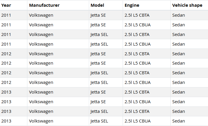 Convient à la VW Jetta SE/SEL 2.5L 2011-2013