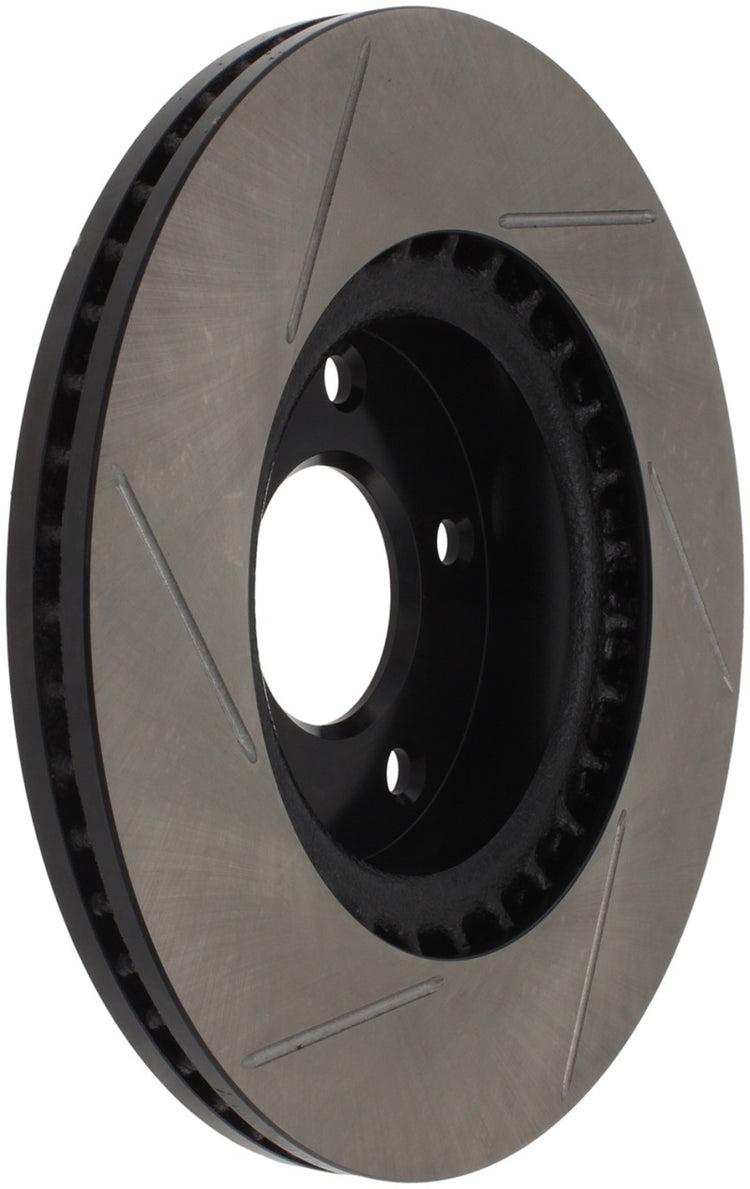 StopTech Slotted Sport Rotors are 1-piece direct replacement brake discs for factory brake systems and stock calipers that look great behind your wheels – and offer significantly improved braking performance. The unique slotting aids with heat and brake dust dispersal; prevents glazing of the pads; adds bite and improves wet and dry braking performance. Built to last; the black e-coating provides protection from corrosion and the high carbon metallurgy (in most applications) offers quieter operation; better crack resistance and increased performance.