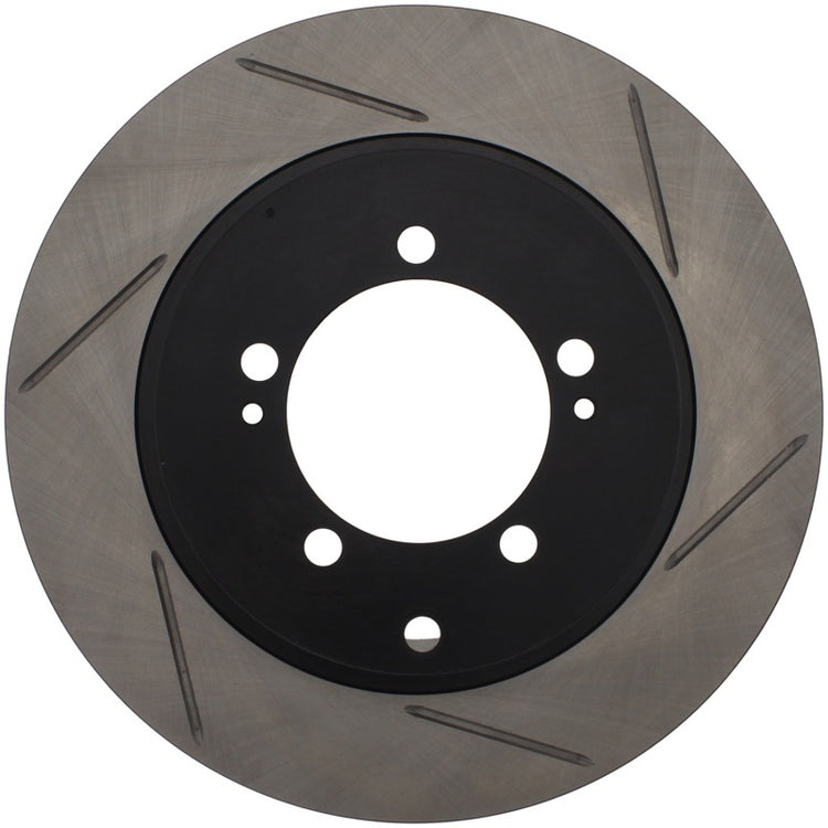 StopTech Slotted Sport Rotors are 1-piece direct replacement brake discs for factory brake systems and stock calipers that look great behind your wheels – and offer significantly improved braking performance. The unique slotting aids with heat and brake dust dispersal; prevents glazing of the pads; adds bite and improves wet and dry braking performance. Built to last; the black e-coating provides protection from corrosion and the high carbon metallurgy (in most applications) offers quieter operation; better crack resistance and increased performance.