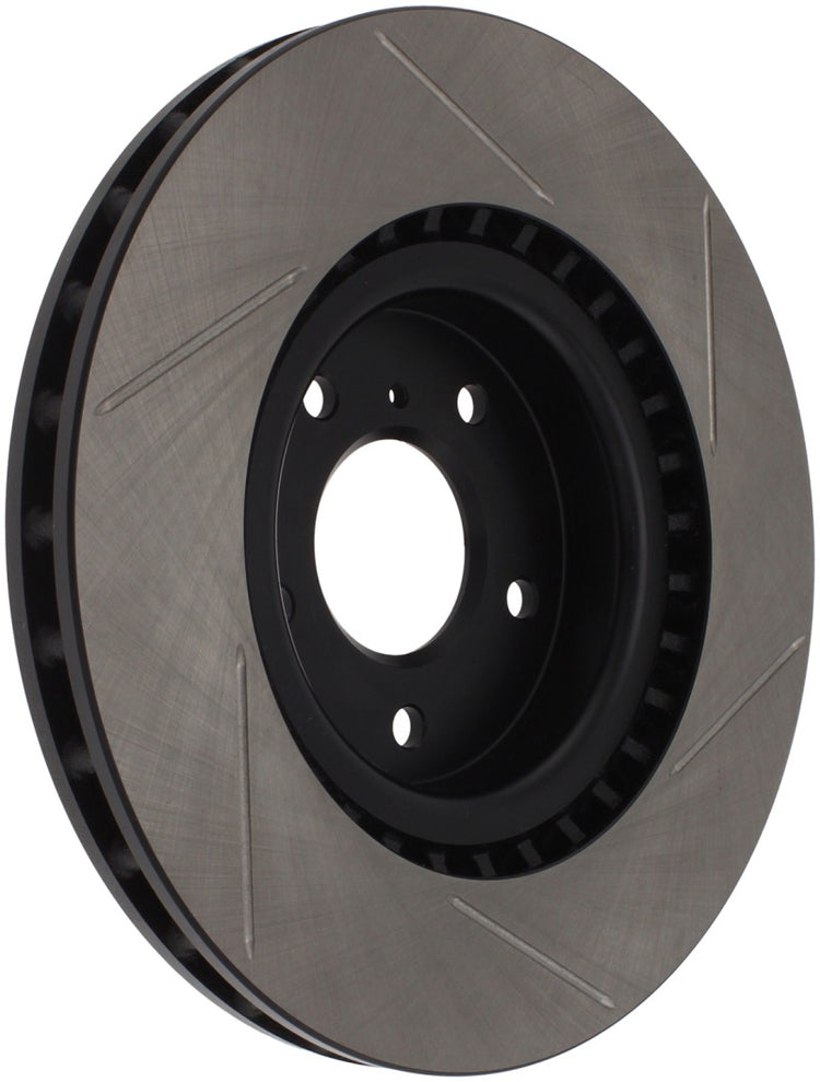 StopTech Slotted Sport Rotors are 1-piece direct replacement brake discs for factory brake systems and stock calipers that look great behind your wheels – and offer significantly improved braking performance. The unique slotting aids with heat and brake dust dispersal; prevents glazing of the pads; adds bite and improves wet and dry braking performance. Built to last; the black e-coating provides protection from corrosion and the high carbon metallurgy (in most applications) offers quieter operation; better crack resistance and increased performance.