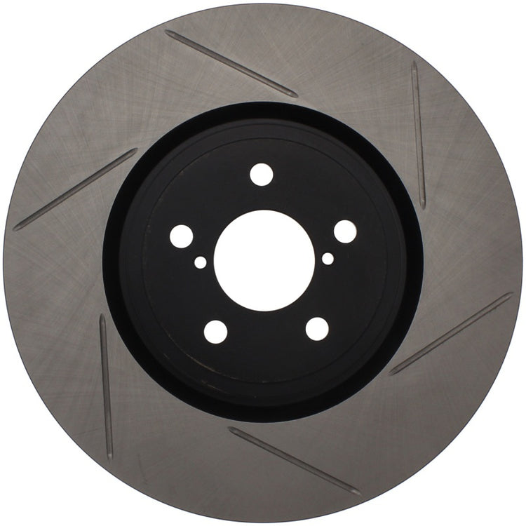 StopTech Slotted Sport Rotors are 1-piece direct replacement brake discs for factory brake systems and stock calipers that look great behind your wheels – and offer significantly improved braking performance. The unique slotting aids with heat and brake dust dispersal; prevents glazing of the pads; adds bite and improves wet and dry braking performance. Built to last; the black e-coating provides protection from corrosion and the high carbon metallurgy (in most applications) offers quieter operation; better crack resistance and increased performance.