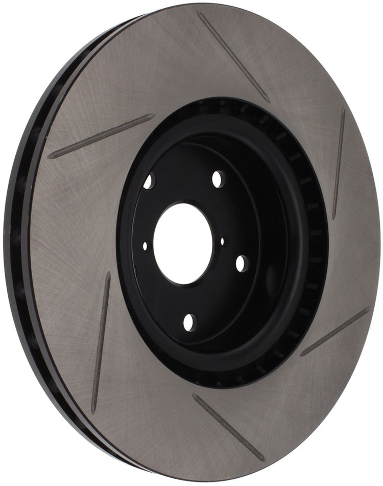 StopTech Slotted Sport Rotors are 1-piece direct replacement brake discs for factory brake systems and stock calipers that look great behind your wheels – and offer significantly improved braking performance. The unique slotting aids with heat and brake dust dispersal; prevents glazing of the pads; adds bite and improves wet and dry braking performance. Built to last; the black e-coating provides protection from corrosion and the high carbon metallurgy (in most applications) offers quieter operation; better crack resistance and increased performance.
