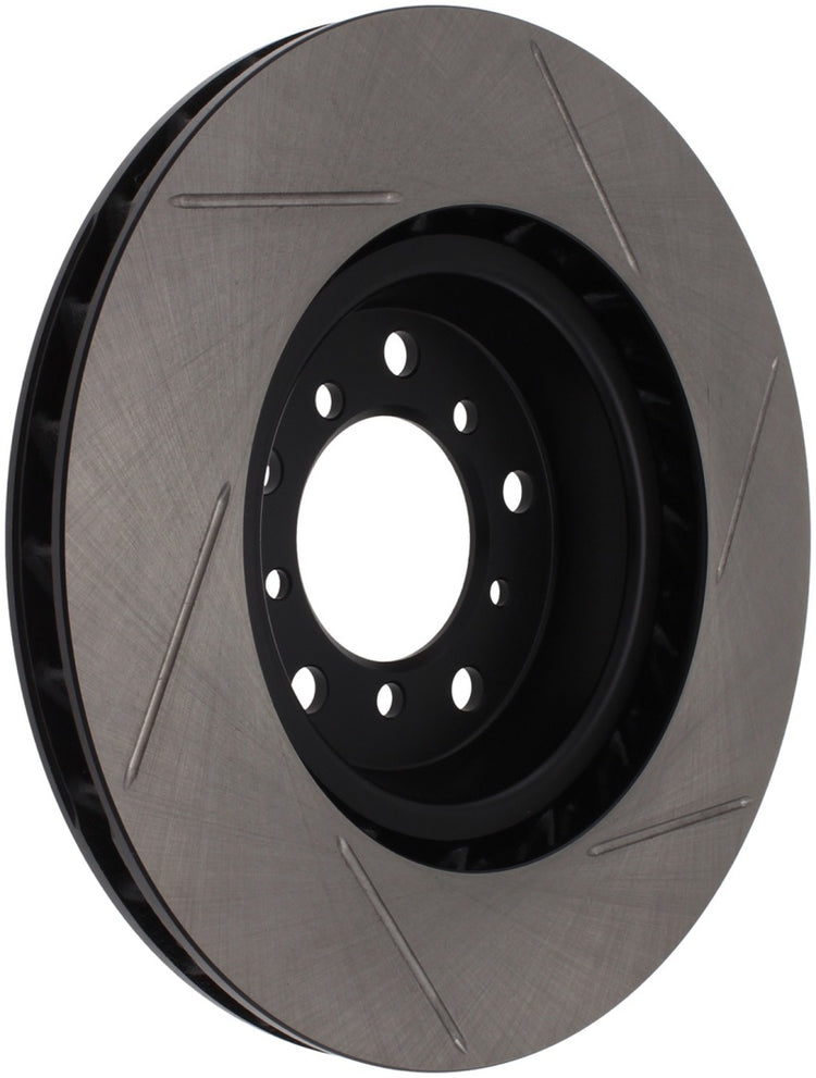 StopTech Slotted Sport Rotors are 1-piece direct replacement brake discs for factory brake systems and stock calipers that look great behind your wheels – and offer significantly improved braking performance. The unique slotting aids with heat and brake dust dispersal; prevents glazing of the pads; adds bite and improves wet and dry braking performance. Built to last; the black e-coating provides protection from corrosion and the high carbon metallurgy (in most applications) offers quieter operation; better crack resistance and increased performance.